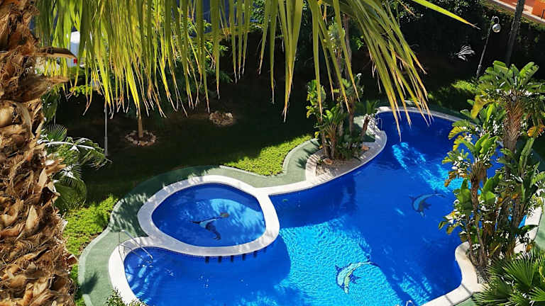 Die Unterkunft Alta Vista - apartamento con 2 dormitorios y vista al mar bietet eine heimelige Atmosphäre mit einem Aussenpool, einem Garten und einer Terrasse. Zudem haben Gäste die Möglichkeit, das kostenlose Wifi zu nutzen.