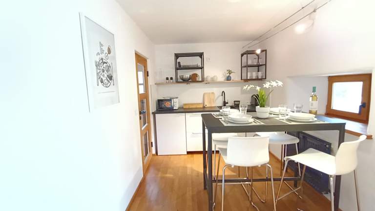 Die Ferienwohnung verfügt über 1 Schlafzimmer, ein Wohnzimmer mit einem Flachbild-TV, eine gut ausgestattete Küche mit Kühlschrank und Geschirrspüler sowie ein Badezimmer mit Dusche. Handtücher und Bettwäsche werden bereitgestellt. Eine Terrasse mit Gartenblick lädt zum Verweilen ein.