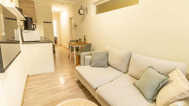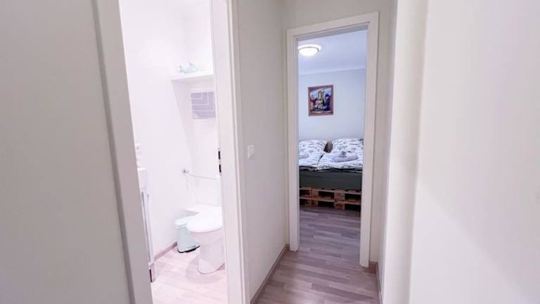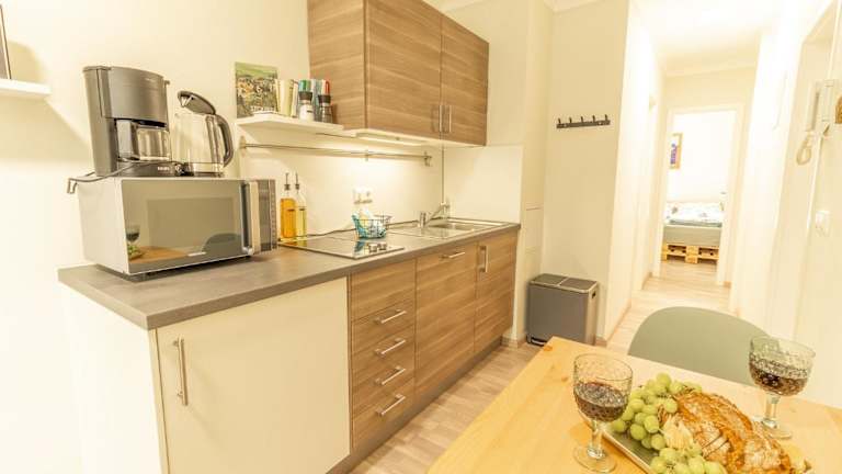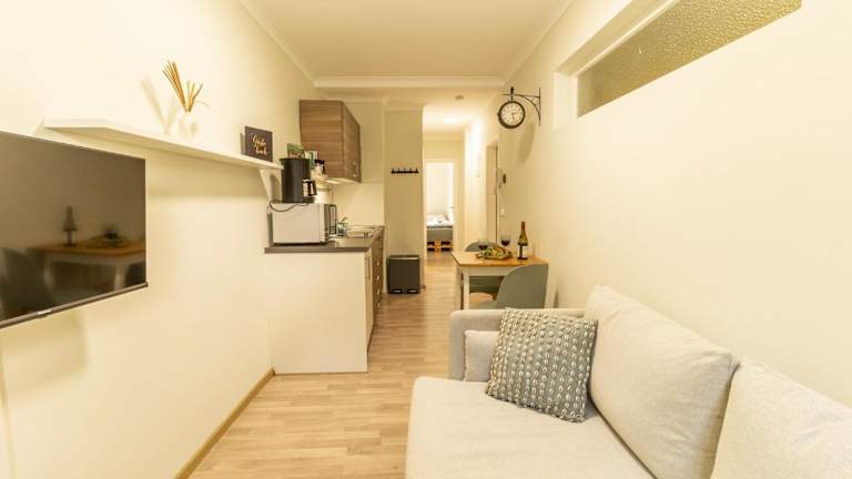 Die Ferienwohnung verfügt über ein Schlafzimmer, ein Wohnzimmer und eine gut ausgestattete Küchenzeile mit Kühlschrank und Geschirrspüler. Zudem gibt es ein Badezimmer mit Dusche. Zur Ausstattung gehören auch ein Flachbild-TV sowie eine Terrasse mit Stadtblick. Handtücher und Bettwäsche werden bereitgestellt.