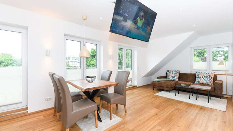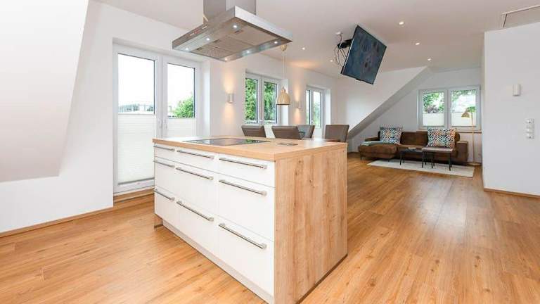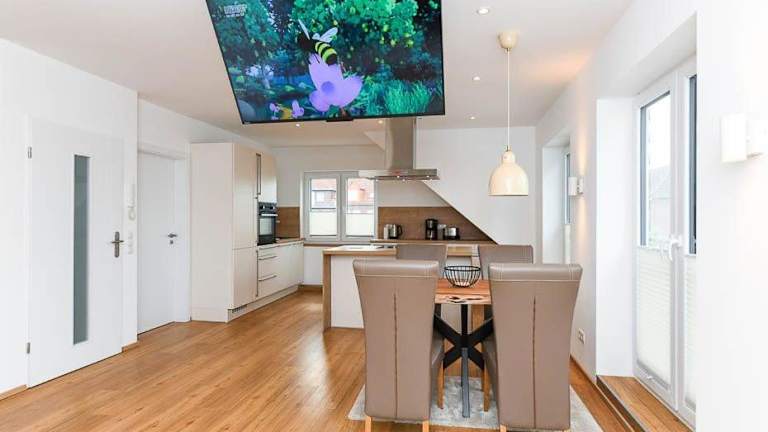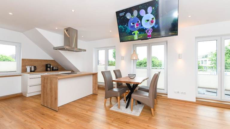 Die Ferienwohnung verfügt über zwei Schlafzimmer und ein Badezimmer. Die Küchenzeile ist mit einem Kühlschrank, einem Geschirrspüler und einem Ofen ausgestattet. WLAN ist in der gesamten Unterkunft kostenfrei verfügbar.
