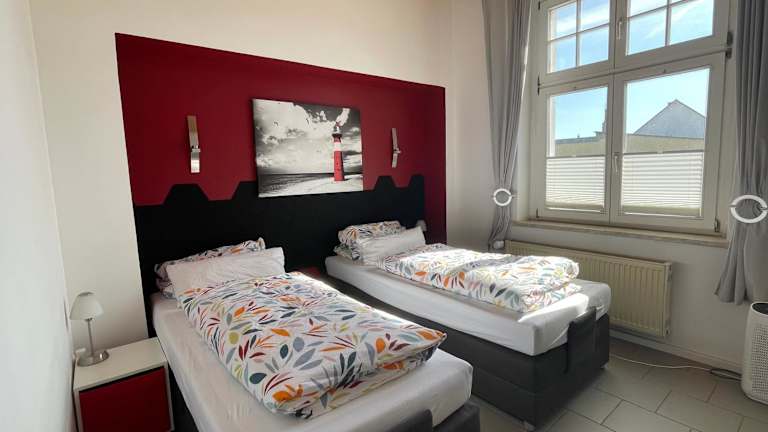 Die Ferienwohnung hat 3 Schlafzimmer und 2 Badezimmer, die sowohl mit einer Dusche als auch mit einer Badewanne ausgestattet sind. Das Wohnzimmer ist mit einem Sitzbereich und einem Essbereich eingerichtet. Die Küche beinhaltet einen Kühlschrank, Geschirrspüler und Ofen. Handtücher und Bettwäsche werden bereitgestellt. Darüber hinaus stehen allergikerfreundliche Zimmer zur Verfügung.