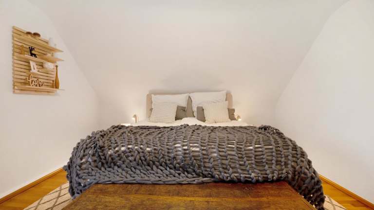 Das Ferienhaus bietet Platz in vier Schlafzimmern sowie einem Wohnzimmer. Eine voll ausgestattete Küche mit Kühlschrank und Kaffeemaschine, zwei Badezimmer mit Dusche und kostenlosen Pflegeprodukten sowie Handtücher und Bettwäsche gehören zur Ausstattung.