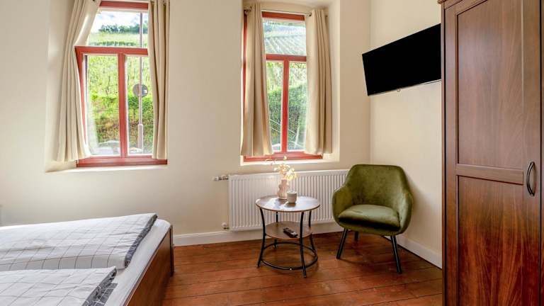 Die Unterkunft Alte Stadtvilla am Weinberg 2 bietet Übernachtungsmöglichkeiten mit Gartenblick und kostenlosem Wifi in der gesamten Anlage.