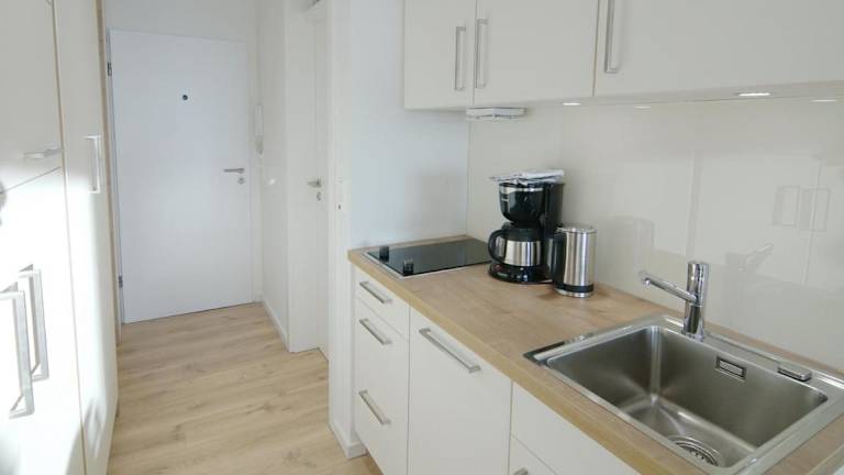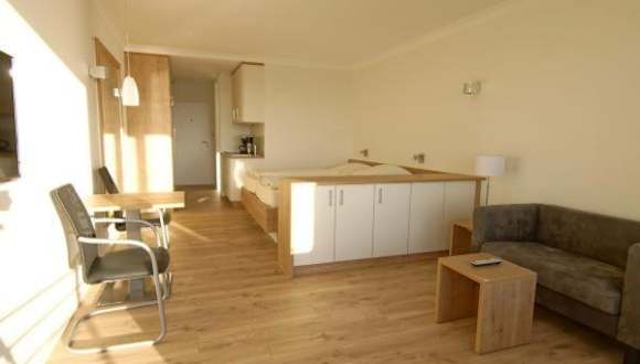 Die lichtdurchfluteten Apartments sind modern und beinhalten eine Küchenzeile mit Mikrowelle, einen Esstisch sowie ein elegantes Badezimmer mit Dusche. WLAN ist in den Apartments inklusive.