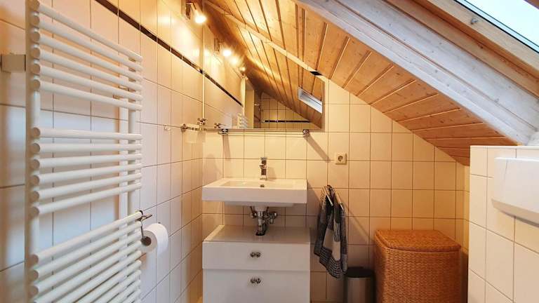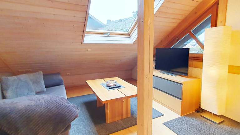 Die Ferienwohnung besteht aus einem Schlafzimmer und einem Wohnzimmer. Zur Ausstattung gehören ein Flachbild-TV, eine gut ausgestattete Küchenzeile mit Kühlschrank und Ofen sowie ein Badezimmer mit Badewanne. Handtücher und Bettwäsche werden bereitgestellt.