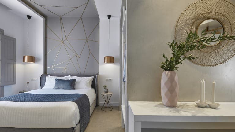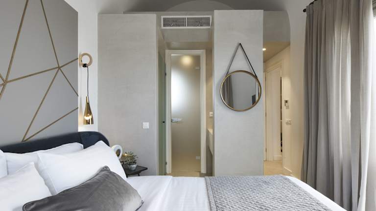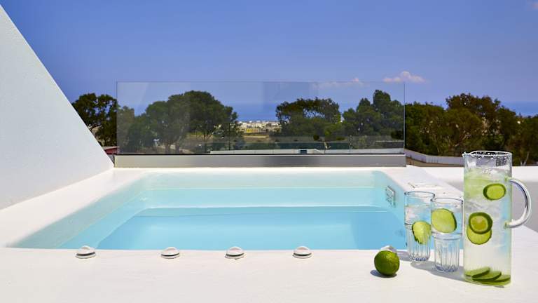 Die Suiten sind minimalistisch, aber stilvoll eingerichtet und verfügen über Annehmlichkeiten wie Klimaanlage, einen Flachbild-TV, Mini-Bar und Safe. Die modernen Badezimmer bieten eine Dusche oder Badewanne und hochwertige Pflegeprodukte. Jedes Zimmer hat einen Balkon oder eine Terrasse mit Meerblick, und es sind sowohl Familien- als auch Nichtraucherzimmer verfügbar.