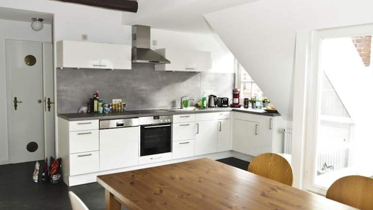 Die Ferienwohnung verfügt über eine voll ausgestattete Küchenzeile, die den Gästen ermöglicht, eigene Mahlzeiten zuzubereiten. Eine Kaffeemaschine steht ebenfalls zur Verfügung.