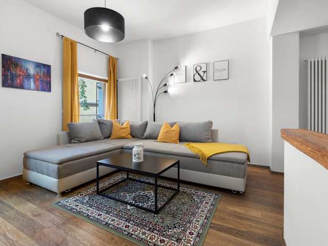 Die Ferienwohnung umfasst ein Schlafzimmer, ein Wohnzimmer, eine voll ausgestattete Küche mit Kühlschrank und Kaffeemaschine sowie ein Badezimmer mit Bidet und Dusche. Handtücher und Bettwäsche werden bereitgestellt. Die Unterkunft bietet außerdem Nichtraucherzimmer und Familienzimmer.