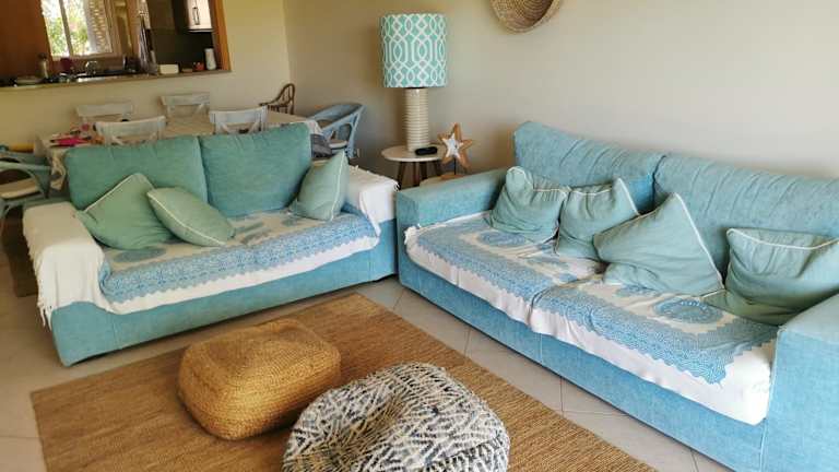 Die Ferienwohnung ist klimatisiert und besteht aus 2 Schlafzimmern, einem Wohnzimmer sowie einer voll ausgestatteten Küche mit Kühlschrank und Kaffeemaschine. Zwei Badezimmer mit Bidet und Badewanne sind ebenfalls vorhanden. Handtücher und Bettwäsche werden bereitgestellt.