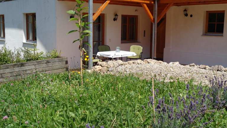 Die Ferienwohnung beinhaltet zwei Schlafzimmer, ein Badezimmer, einen Essbereich sowie eine voll ausgestattete Küche. Zudem verfügt sie über Bettwäsche, Handtücher und einen Flachbild-TV. Eine Terrasse mit Gartenblick lädt zum Entspannen ein.