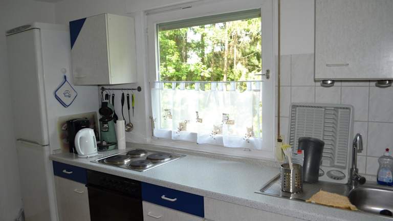 Die Ferienwohnung besteht aus einem Schlafzimmer, einem Wohnzimmer und einer voll ausgestatteten Küche, die mit einem Kühlschrank und einer Kaffeemaschine ausgestattet ist. Zudem gibt es ein Badezimmer mit Dusche und kostenlosen Pflegeprodukten. Handtücher und Bettwäsche werden zur Verfügung gestellt.