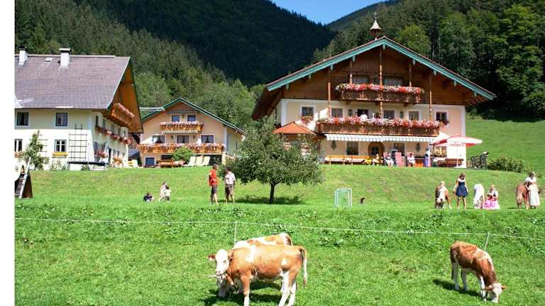Am Ferienbauernhof Schmiedbauer com Salzkammergut bietet Übernachtungsmöglichkeiten in einer heimeligen Atmosphäre mit Garten, Terrasse und kostenlosem Shuttle-Service für erhöhten Komfort. Kostenloses Wifi ist ebenfalls in der gesamten Unterkunft verfügbar.