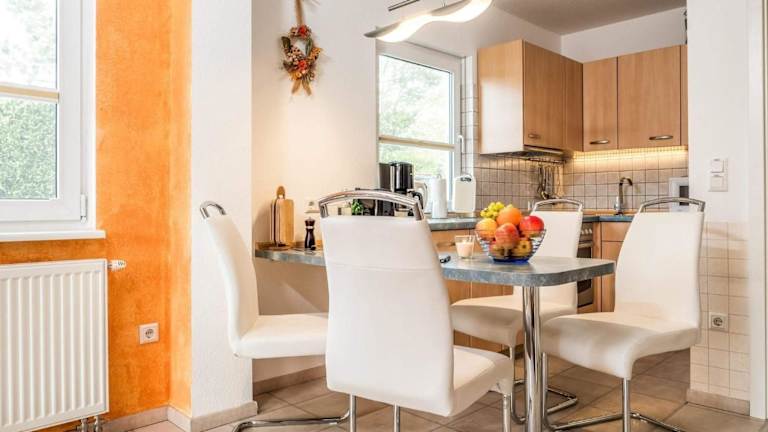 Das Ferienhaus verfügt über 2 Schlafzimmer und eine Küchenzeile, die mit einem Kühlschrank, einem Geschirrspüler sowie einer Kaffeemaschine ausgestattet ist. Für zusätzlichen Komfort können Handtücher und Bettwäsche gegen Aufpreis bereitgestellt werden.