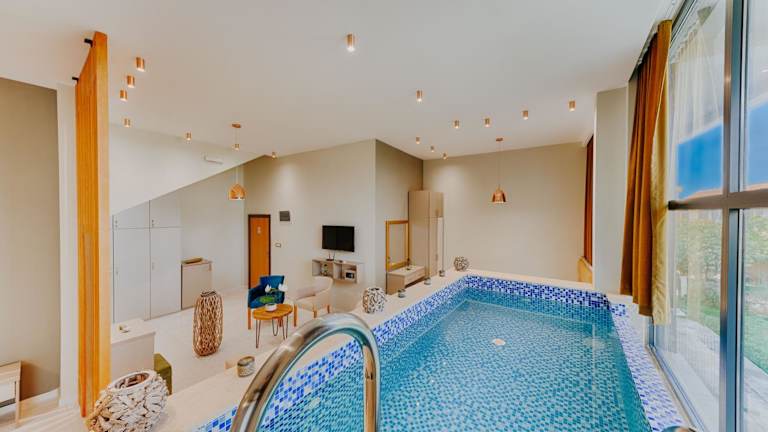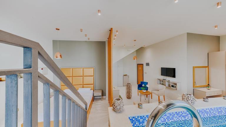 Die klimatisierten Zimmer sind ausgestattet mit einem Schreibtisch, Wasserkocher, Kühlschrank, Minibar, Safe, Flachbild-TV, Terrasse und einem eigenen Badezimmer mit Dusche. Alle Zimmer sind mit Bettwäsche und Handtüchern eingerichtet.