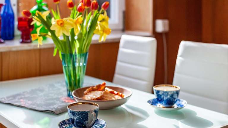 Die Ferienwohnung umfasst ein Schlafzimmer, ein Wohnzimmer sowie ein Badezimmer mit Dusche und kostenlosen Pflegeprodukten. Zur Ausstattung gehören ein Kühlschrank, eine Kaffeemaschine, Handtücher und Bettwäsche.