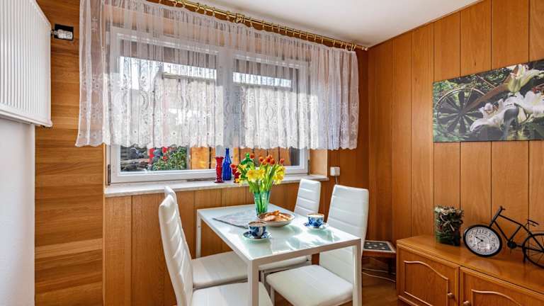 Am Teich besticht durch Gartenblick und bietet eine gemütliche Ferienwohnung mit einer Veranda oder einem Patio. Die Unterkunft verfügt über eine voll ausgestattete Küche sowie moderne Annehmlichkeiten wie kostenloses Wifi.