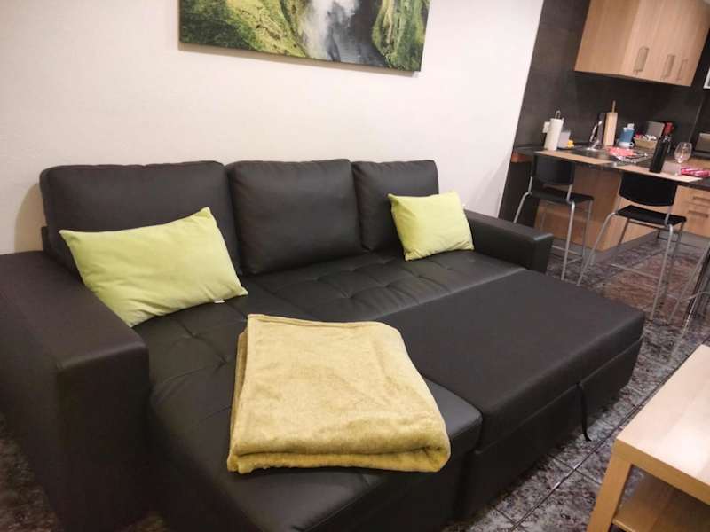 Die Ferienwohnung umfasst ein Schlafzimmer, ein Wohnzimmer und eine voll ausgestattete Küche mit Kühlschrank und Kaffeemaschine. Das Badezimmer ist mit einer Dusche ausgestattet. Handtücher und Bettwäsche werden bereitgestellt.