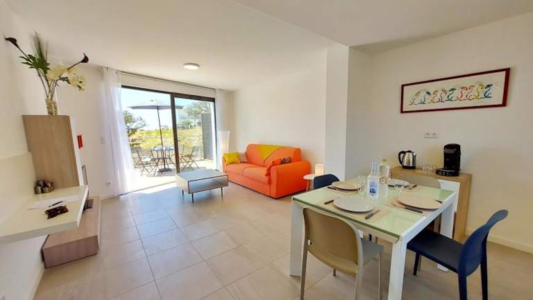 Die Ferienwohnung besteht aus einem Schlafzimmer, einem Wohnzimmer und einem Badezimmer mit einer Dusche sowie kostenlosen Pflegeprodukten. Handtücher und Bettwäsche werden zur Verfügung gestellt. Klimaanlage und Heizung sind ebenfalls vorhanden.