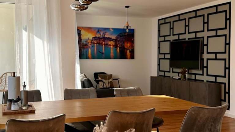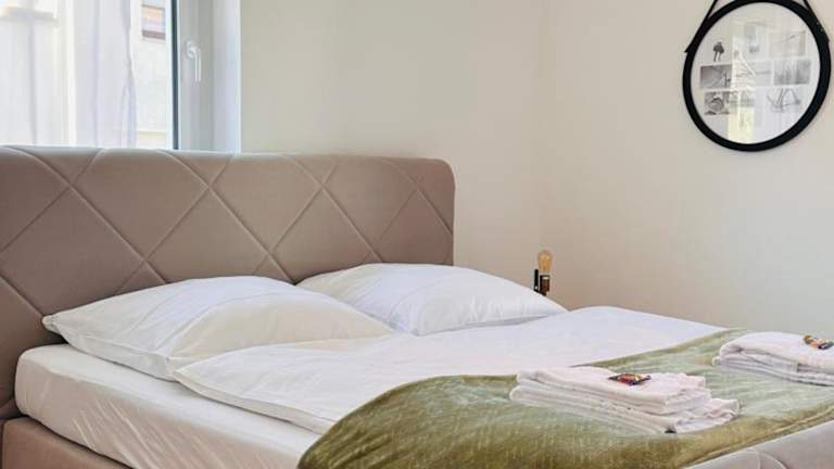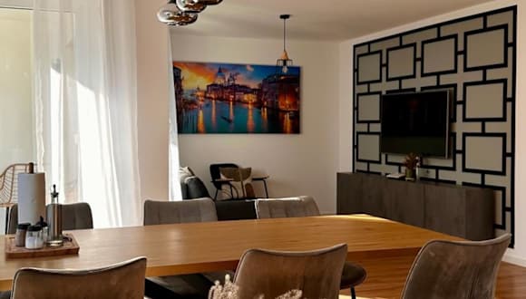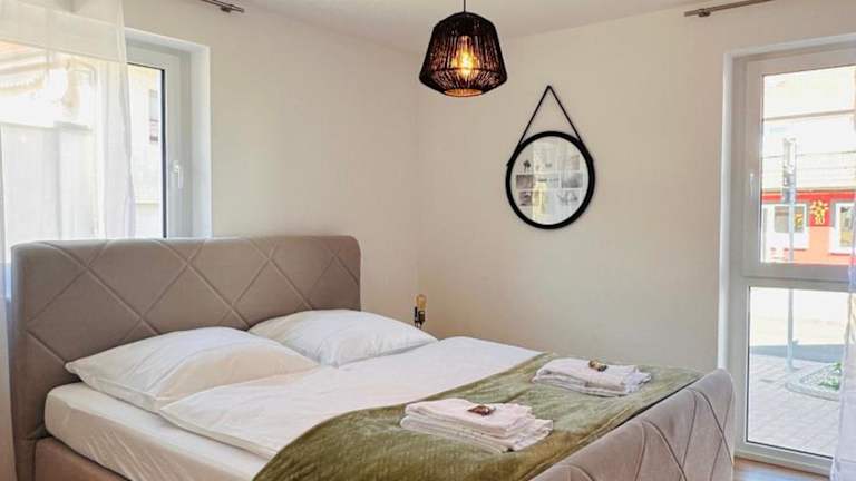 Das AMAO Pearl ist eine rollstuhlgerechte Suite mit einer Fläche von 94 qm, die Platz für bis zu 10 Personen bietet. Das Gebäude wurde 2024 erbaut und beinhaltet einen Aufzug sowie eine Tiefgarage. Gäste können bequem von der Suite auf den Balkon treten, welcher einen herrlichen Blick auf die Berge bietet. Eine ruhige Unterkunft für Familien und Gruppen, die die Nähe zur Messe schätzt.
