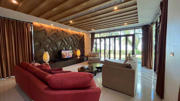 Die Villa bietet verschiedene Freizeitmöglichkeiten wie einen eigenen Strandbereich und die Option, Velo zu fahren oder zu reiten (angeboten gegen zusätzliche Gebühren). Zudem gibt es Möglichkeiten zum Grillieren und Entspannen am Pool.