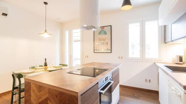 Die Ferienwohnung besteht aus zwei Schlafzimmern, einem Wohnzimmer und einer voll ausgestatteten Küche mit Kühlschrank und Kaffeemaschine. Die zwei Badezimmer sind mit Bidet und Dusche ausgestattet. Handtücher und Bettwäsche werden zur Verfügung gestellt.
