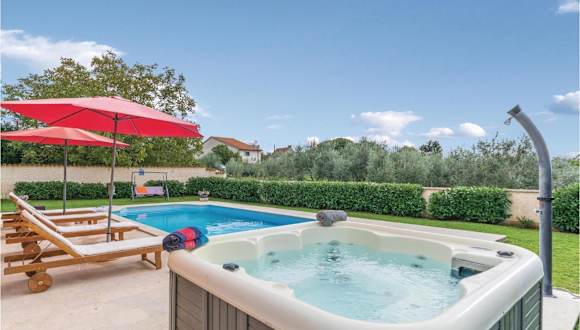 Amazing Home In Krnica ist ein heimeliges Ferienhaus, das Übernachtungsmöglichkeiten mit einem eigenen Pool bietet. Die Unterkunft umfasst 4 Schlafzimmer, einen Wohnraum und eine voll ausgestattete Küche. Ein Wellnessbereich mit Whirlpool und ein aussergewöhnlicher Aussenpool sind ebenfalls vorhanden.