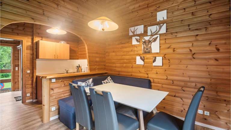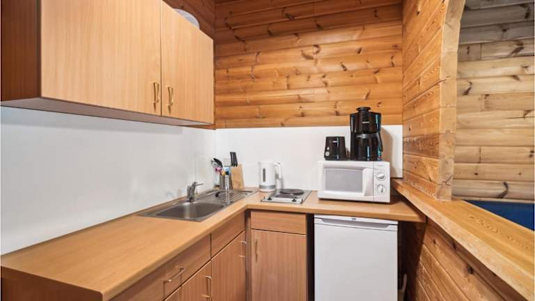 Das Ferienhaus verfügt über ein Schlafzimmer und ein Wohnzimmer. Die voll ausgestattete Küche beinhaltet unter anderem einen Kühlschrank, was die Selbstversorgung während des Aufenthalts erleichtert.