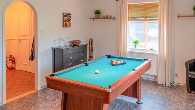 Die Unterkunft bietet verschiedene Freizeitmöglichkeiten wie Angeln und Billard. Im Garten können die Gäste entspannen. Grillmöglichkeiten sind ebenfalls vorhanden.