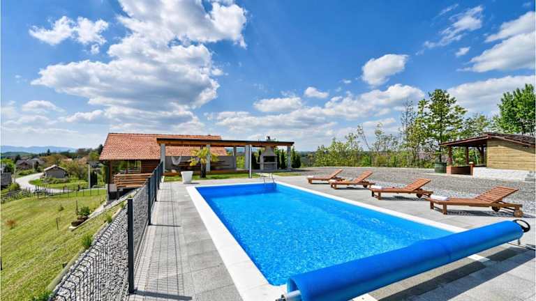 Die Gäste können sich auf zahlreiche Freizeitmöglichkeiten freuen, darunter ein Aussenpool, eine Sonnenterrasse und ein Wellnessbereich mit Sauna und Whirlpool. Zudem stehen Grillmöglichkeiten und verschiedene Outdoor-Spiele zur Verfügung.