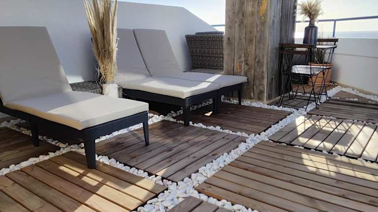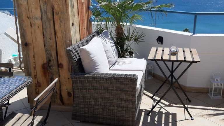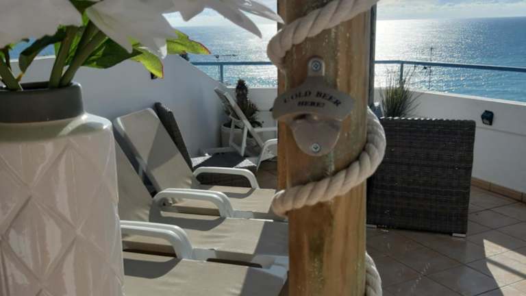 Das AMAZING PENTHOUSE bietet einen panoramicen Meerblick und eine private Terrasse mit einer Tikki-Bar. Es handelt sich um eine klimatisierte Ferienwohnung, die eine einladende Atmosphäre für erholsame Ferien schafft.