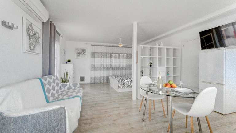Die Ferienwohnung umfasst ein Schlafzimmer, ein Wohnzimmer, eine voll ausgestattete Küche mit Kühlschrank und Kaffeemaschine sowie ein Badezimmer mit Dusche und kostenlosen Pflegeprodukten. Gäste haben Zugang zu Handtüchern und Bettwäsche. Die Unterkunft bietet zudem eine Klimaanlage, die gegen Gebühr genutzt werden kann.