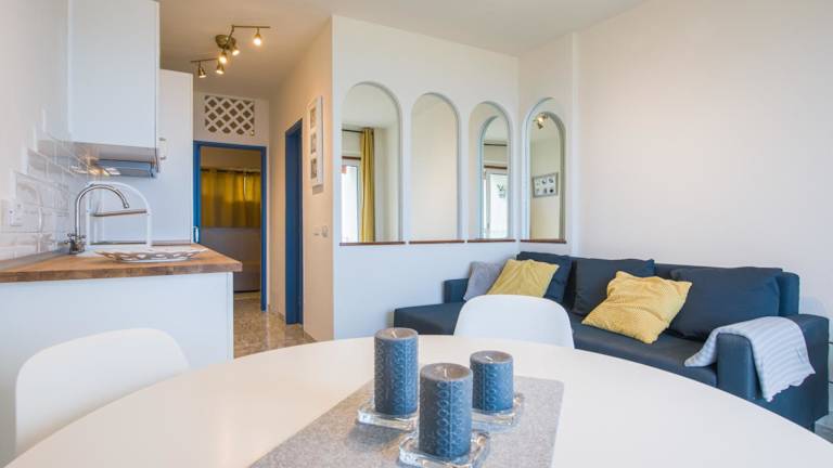 Die Ferienwohnung besteht aus einem Schlafzimmer, einem Wohnzimmer und einer voll ausgestatteten Küche mit Kühlschrank und Wasserkocher. Ein Badezimmer mit Dusche und Haartrockner ist ebenfalls vorhanden. Handtücher und Bettwäsche werden bereitgestellt.