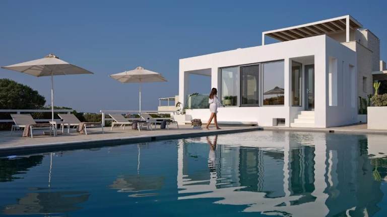 Die Ambassador Luxury Villas bieten Ihnen in Santa Maria auf der Insel Paros einen luxuriösen Aufenthalt mit Außenpool und atemberaubendem Meerblick. Die klimatisierten Villen sind modern eingerichtet und verfügen über eine Terrasse sowie einen gemütlichen Sitz- und Essbereich. Einige Villen bieten zudem einen Balkon oder eine Terrasse mit Blick auf den Pool. Zur Ausstattung gehören eine voll ausgestattete Küche und ein eigenes Bad. Das Hotel verfügt auch über einen Grillbereich und kostenloses WLAN.