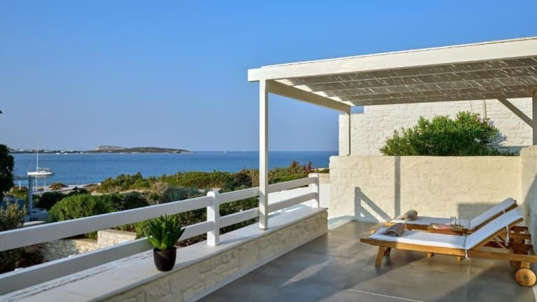 Die Ambassador Luxury Villas liegen in Santa Maria auf der Insel Paros. Von hier aus haben Sie einen wunderschönen Blick auf das Meer und die umliegende Landschaft. Die Stadt Náousa erreichen Sie nach nur 3,8 km. Der nächste Flughafen, der Flughafen Paros, ist 29 km entfernt.