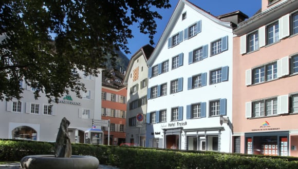 Das gemütliche ***Hotel Freieck mitten in der Churer Altstadt lädt Sie zum Verweilen und zum Erholen ein. Mit unseren 41 Gästezimmern und insgesamt 85 Hotelbetten bieten wir unseren Gästen in der nachts verkehrsfreien Altstadt, einen erholsamen Ruheplatz an.