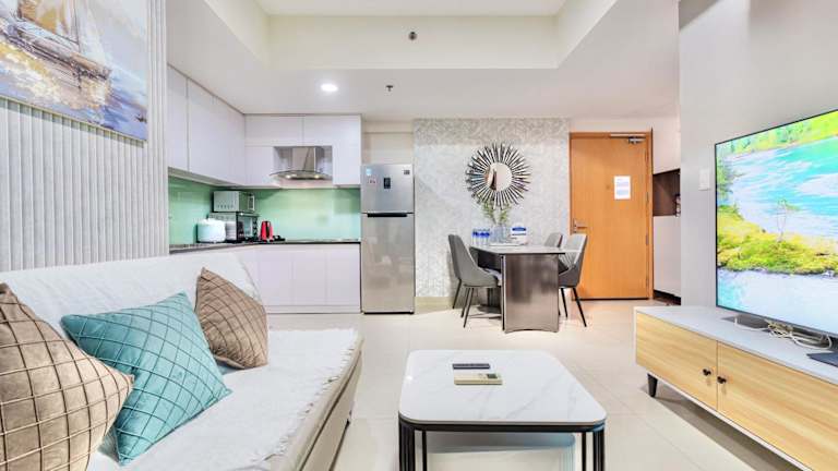 Die Unterkunft ambiHOME 2BR 2WC befindet sich in Ho-Chi-Minh-Stadt, nur 5,2 km vom Vietnam History Museum und 6,3 km vom Einkaufszentrum Diamond Plaza entfernt. Weitere Sehenswürdigkeiten wie das Hauptpostamt Saigon (6,4 km) und die Kathedrale Notre-Dame von Saigon (6,6 km) sind ebenfalls in der Nähe. Der Flughafen Tan-Son-Nhat liegt etwa 9 km entfernt.