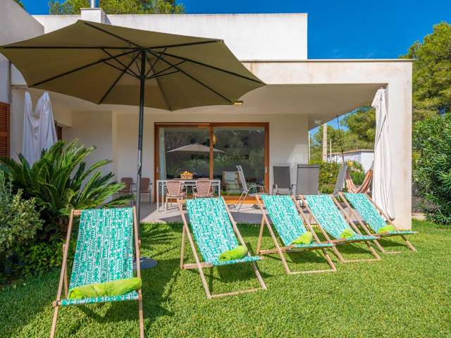 Das Ferienhaus mit Klimaanlage besteht aus 3 Schlafzimmern, einem heimeligen Wohnzimmer und einer voll ausgestatteten Küche mit Kühlschrank und Kaffeemaschine. Es bietet 2 Badezimmer mit Dusche und Haartrockner. Handtücher und Bettwäsche werden bereitgestellt.