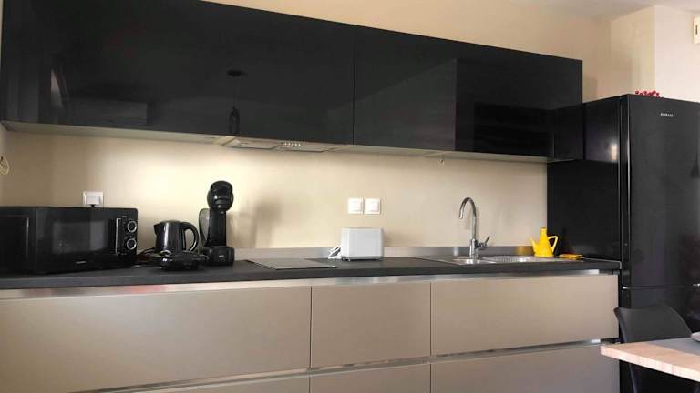 Die Ferienwohnung verfügt über ein Schlafzimmer und ein Wohnzimmer. Die voll ausgestattete Küche beinhaltet einen Kühlschrank und eine Kaffeemaschine. Zudem ist ein Bad mit Dusche und kostenlosen Pflegeprodukten vorhanden. Handtücher und Bettwäsche werden zur Verfügung gestellt. Die Zimmer sind klimatisiert und schallisoliert. Allergikerfreundliche Zimmer sind ebenfalls verfügbar.