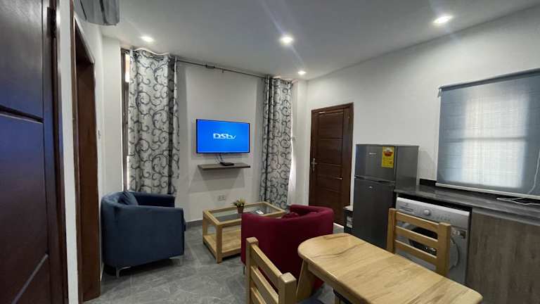 Die Unterkunft umfasst ein Schlafzimmer, ein Wohnzimmer sowie eine voll ausgestattete Küche. Es gibt zwei Badezimmer mit Dusche. Die Zimmer sind klimatisiert und beinhalten zudem einen Flachbild-TV. Die tägliche Reinigung der Zimmer ist gewährleistet.