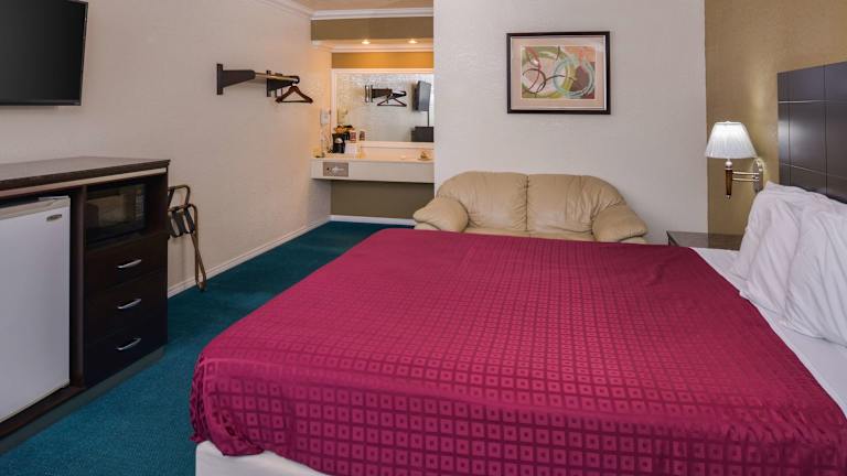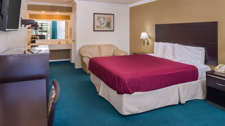 Die Zimmer im Atascadero Inn sind schlicht gestaltet und ausgestattet mit einem Flachbild-TV, Kaffeemaschine, Mikrowelle und Kühlschrank. Jedes Zimmer bietet einen Schreibtisch sowie einen Sitzbereich.