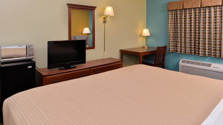Das Americas Best Value Inn in Seymour hat sich auf geräumige Zimmer spezialisiert, die mit einem 32-Zoll-Flachbild-TV und einer kostenlosen warmen Frühstücksoption ausgestattet sind. Die Ausstattung der Zimmer ist einfach und umfasst eine Kaffeemaschine sowie einen gemütlichen Sitzbereich. Die Zimmereinrichtungen sind durch Teppichböden angenehm heimelig gestaltet. Wäschemöglichkeiten und eine 24-Stunden-Rezeption stehen den Gästen zur Verfügung. Parkiermöglichkeiten sind ebenfalls vorhanden und kostenfrei.