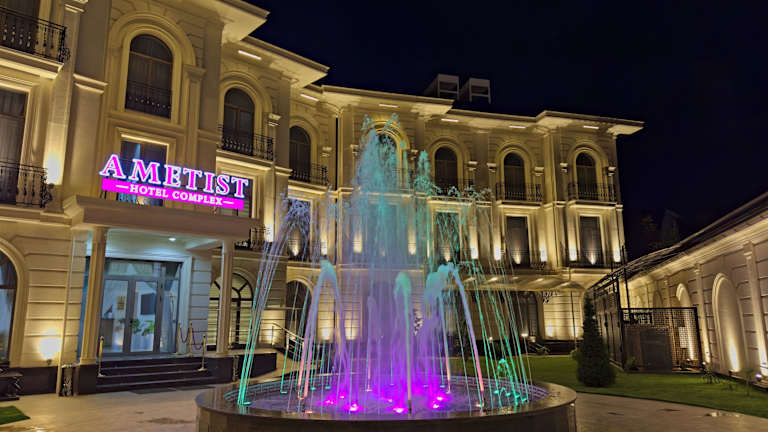 Das Ametist Hotel Complex befindet sich in Samarkand, nur 8 km vom Internationalen Flughafen Samarqand entfernt. Die Umgebung bietet einheimische Sehenswürdigkeiten und eine kulturell reiche Atmosphäre.