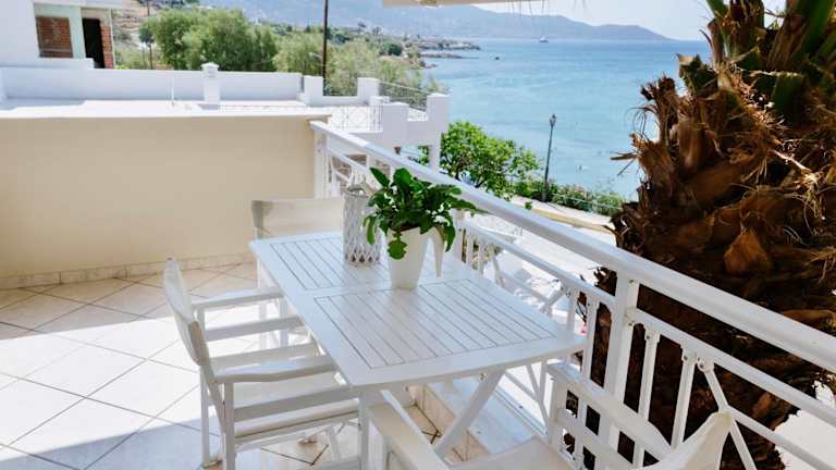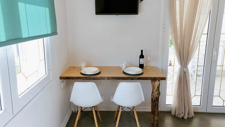 Die Ferienwohnung verfügt über 1 Schlafzimmer, 1 Badezimmer, Bettwäsche, Handtücher, einen Flachbild-TV, einen Essbereich sowie eine voll ausgestattete Küchenzeile. Die Terrasse bietet einen Blick auf das Meer und die Zimmer sind schallisoliert. Zudem sind die Zimmer Nichtraucherzimmer und es stehen Gartenmöbel zur Verfügung.