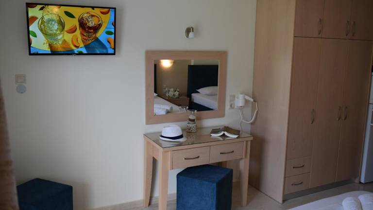 Ammos & Thalassa bietet klimatisierte Wohneinheiten mit Fliesenböden, einem eigenen Badezimmer, einem Flachbild-TV, einem Kleiderschrank, einer ausgestatteten Küche und einem Balkon mit Meerblick. Ein Garten lädt zum Entspannen ein.