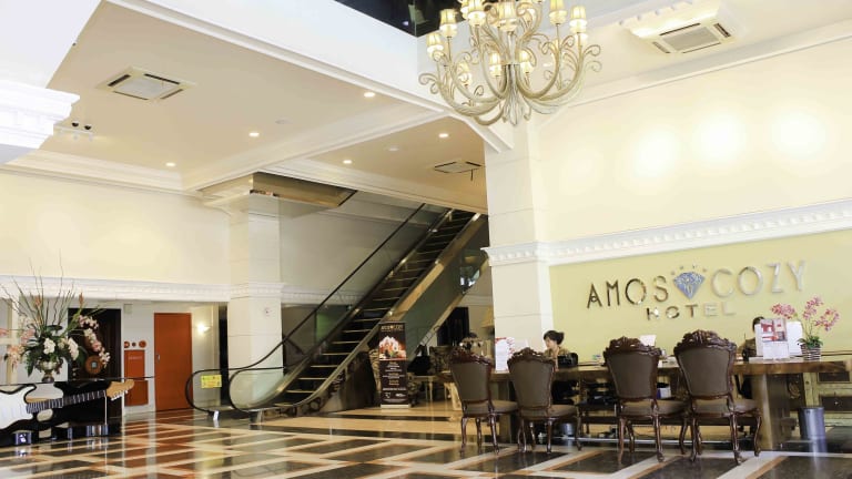 Das Amos Cozy Hotel verfügt über 92 Zimmer, inklusive 91 Einzelzimmer, und ist mit einem Aufzug ausgestattet. Die Rezeption bietet einen 24-Stunden-Service für ein- und auschecken. Das Haus bietet verschiedene Einrichtungen wie eine Gepäckaufbewahrung, einen Safe sowie kostenfreies WLAN im öffentlichen Bereich. Gäste, die mit dem Auto anreisen, haben Parkiermöglichkeiten auf dem Hotelgelände. Zu den weiteren Angeboten zählen ein 24h-Sicherheitsdienst, eine Autovermietung, ein Transferservice und ein Wäscheservice.