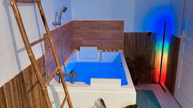 Die Unterkunft Amour l Romance l Chambre Secrète l Balnéo Massage bietet Übernachtungsmöglichkeiten in einem heimeligen Ferienhaus mit Zugang zu einem entspannenden Whirlpool.
