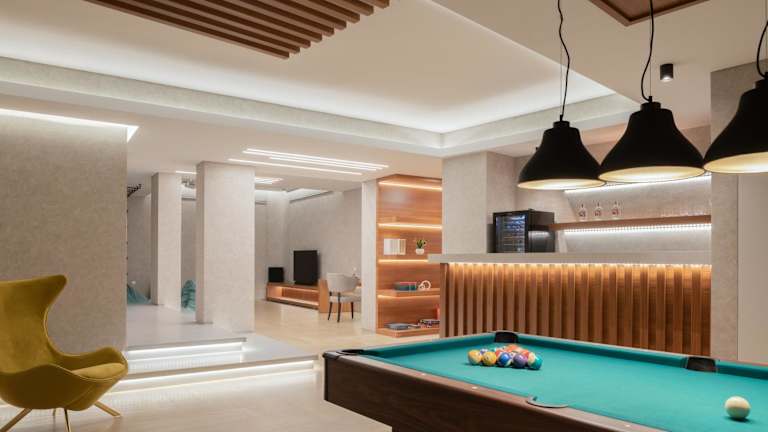 Die Villa umfasst 9 Schlafzimmer, ein Wohnzimmer sowie eine voll ausgestattete Küche, die unter anderem über einen Kühlschrank und eine Kaffeemaschine verfügt. Zur weiteren Ausstattung gehören 10 Badezimmer mit einer Dusche und einem Whirlpool sowie ein Flachbild-TV mit Satellitenkanälen, ein Blu-ray-Player und eine Spielekonsole.