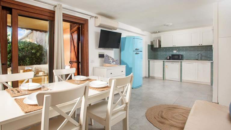 Das Ferienhaus verfügt über zwei Schlafzimmer, ein Wohnzimmer und eine voll ausgestattete Küche mit Kühlschrank und Kaffeemaschine. Es sind ein Badezimmer mit Bidet und Dusche sowie Klimaanlage vorhanden. Handtücher und Bettwäsche können gegen Aufpreis bereitgestellt werden. Ein Grill ist ebenfalls verfügbar.
