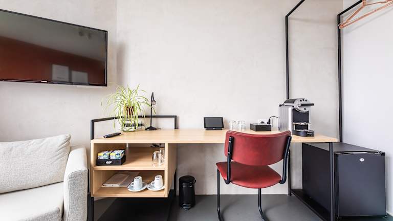 Die Zimmer sind mit einem Flachbild-TV, einem Schreibtisch sowie einem eigenen Badezimmer mit Regendusche und Haartrockner ausgestattet. Für Bequemlichkeit sorgt die Klimaanlage sowie Kaffee- und Teezubereitungsmöglichkeiten von Nespresso. Die Zimmer sind im niederländischen Design eingerichtet.
