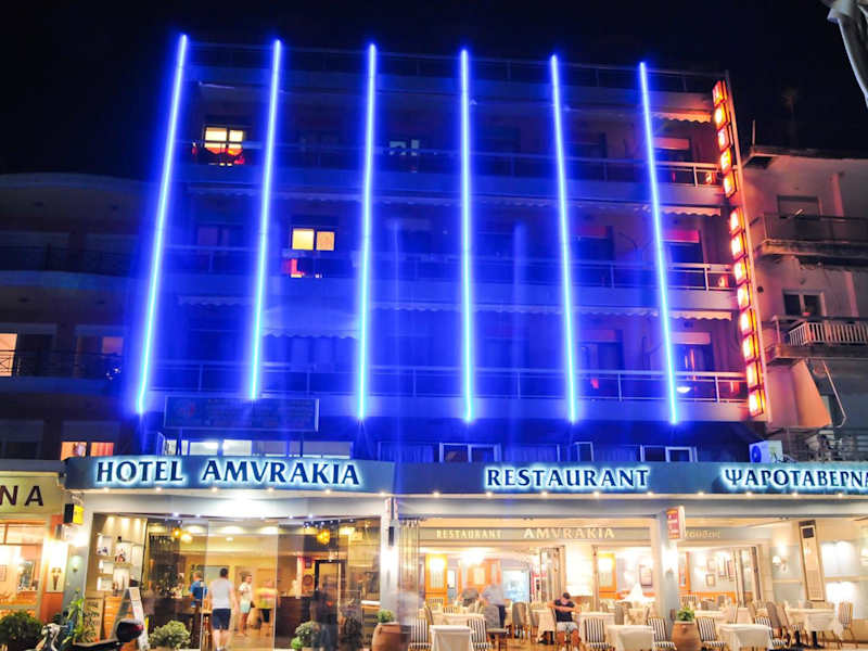 Das Amvrakia Hotel bietet Übernachtungsmöglichkeiten in einer heimeligen Atmosphäre mit einer Gemeinschaftslounge, einer Terrasse und einem Restaurant. Die Rezeption ist rund um die Uhr besetzt und der Zimmerservice steht ebenfalls zur Verfügung. Kostenloses Wifi ist im gesamten Hotel verfügbar. Die Unterkunft stellt zudem Flughafentransfers und eine Autovermietung zur Verfügung.